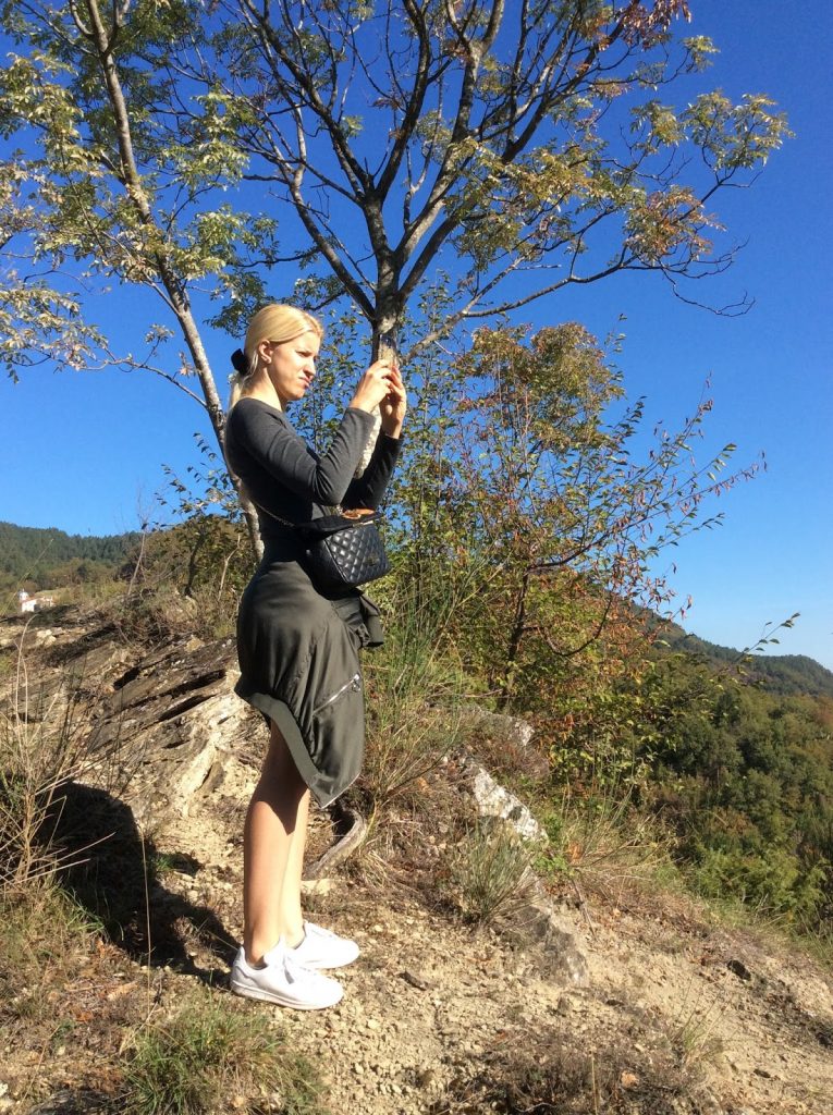 Ci siamo diretti verso località Biforco, per poi salire fino a raggiungere Rocca di Castiglione. Di tanto in tanto ci fermavamo ad ammirare il paesaggio, sempre nuovo ad ogni nuovo passo. Hanno cominciato ad arrivarci le prime sollecitazioni, da parte del nostro cantore Gianmaria Beccari. “Il mattino arride sulle cime dei monti. in alto sulle cuspidi di un triangolo desolato si illumina il castello, più alto e più lontano” cit. Dino Campana.