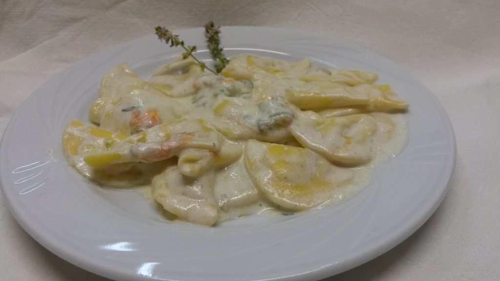 Le mezzelune ripiene con lo stracchino, zucchine e fiori di zucca